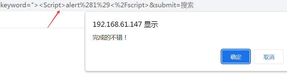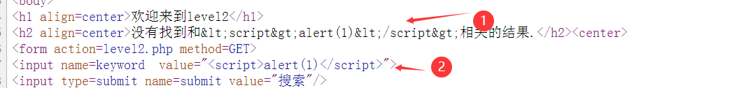 由源代码①可知,网页对js的<>进行了过滤。由②可知测试语句被完整的写在value的位置了,并没有被浏览器所执行。