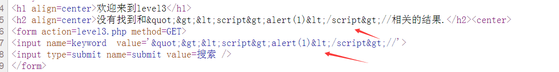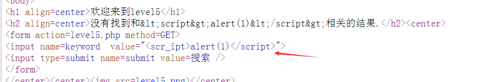 - 通过script ,不含<>的poc测试,通过网页源代码可以知道,后台对其进行了过滤