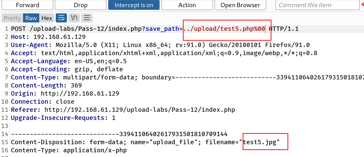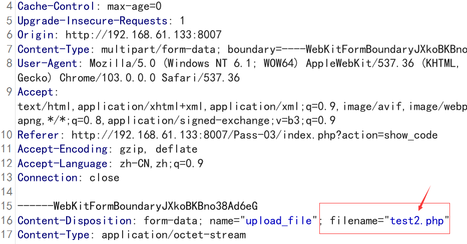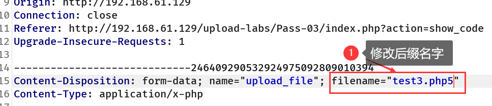 - 方法二:bp抓包,更改文(filename属性)件后缀名