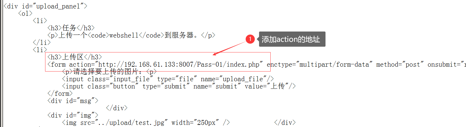 标签添加服务器地址到action,(指向何处发送表单数据,即需要发送的服务器的地址) -